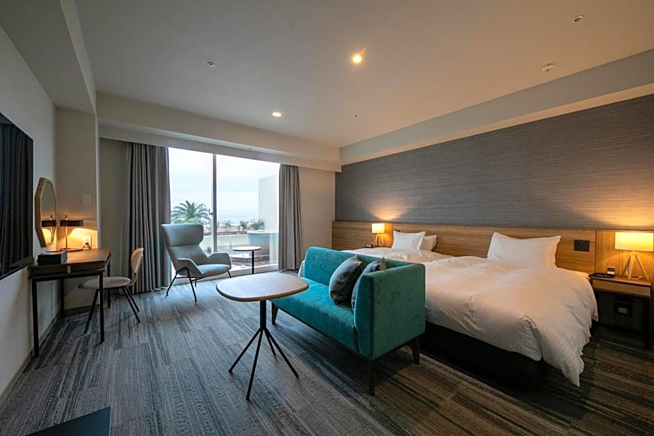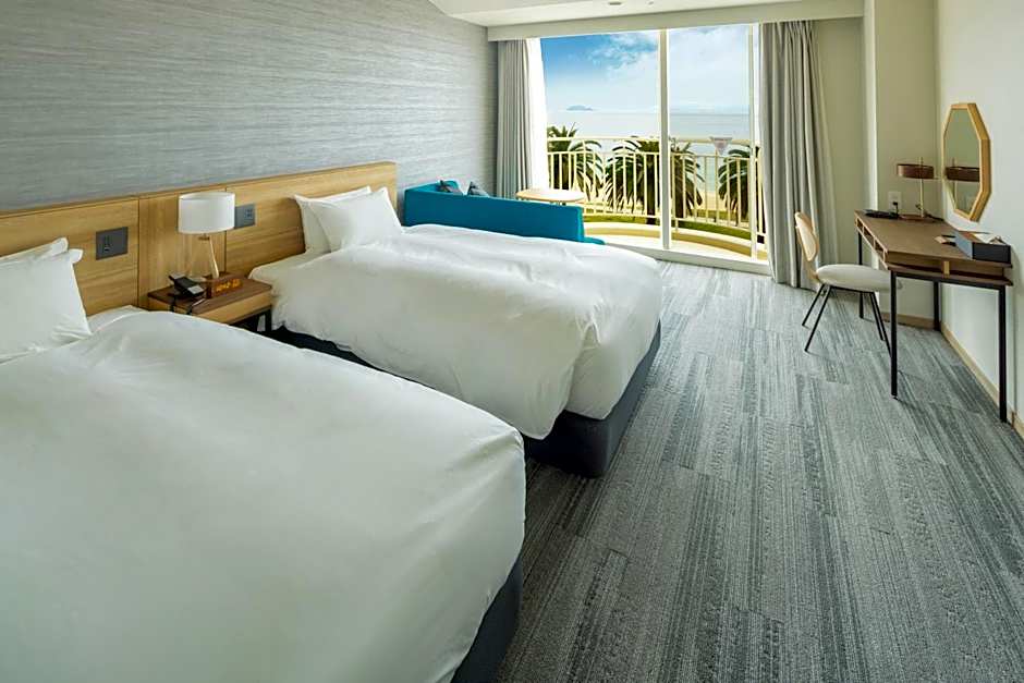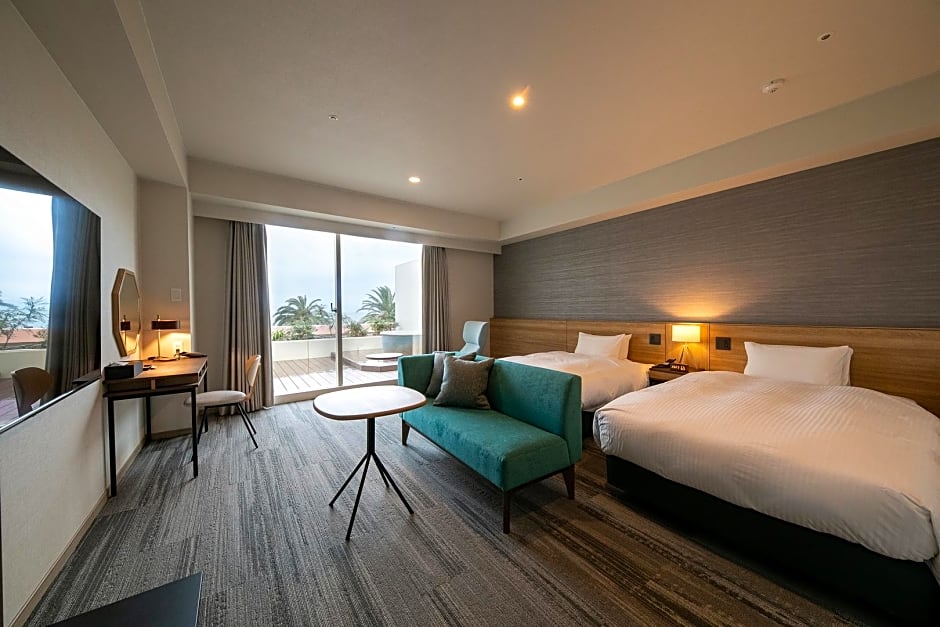 The private open-air bath and spa bath are the standout features of this twin room. The spacious air-conditioned twin room features a flat-screen TV with streaming services, soundproof walls, executive lounge access, a wardrobe as well as sea views. This room comes with club lounge access and complimentary gym access.